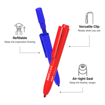Discover the ease of creative expression with our Permanent Marker M. Click effortlessly — single-handed operation, no cap required. The innovative air-tight sealing system preserves ink integrity, allowing your ideas to unfold seamlessly. The versatile clip adds convenience to your creative process, and with easy refills, your Permanent Marker M remains a timeless tool for endless possibilities.